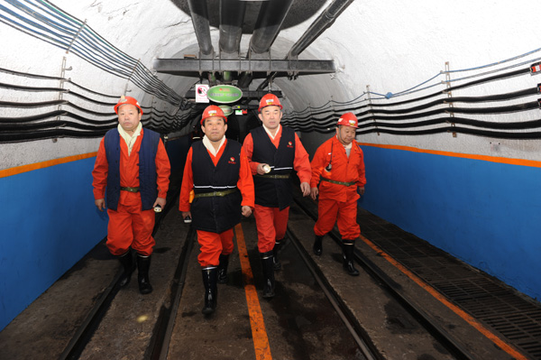 周光全一行到矿后,直接下井,先后到鹿洼煤矿采二工区23下03 综采工作面、1号避难硐室、1号过渡站等处督导检查,每到一处督导组都仔细检查,详细询问安全生产工作情况。升井后,在矿行政办公楼四楼会议室,矿长张运宪汇报了鹿洼煤矿近期安全生产工作,认真贯彻执行《煤矿矿长保护矿工生命安全七条规定》情况,市煤炭局两会期间安全生产文件落实情况,井下安全避险"六大系统"建设情况,四级隐患排查治理、领导下井带班等工作情况。