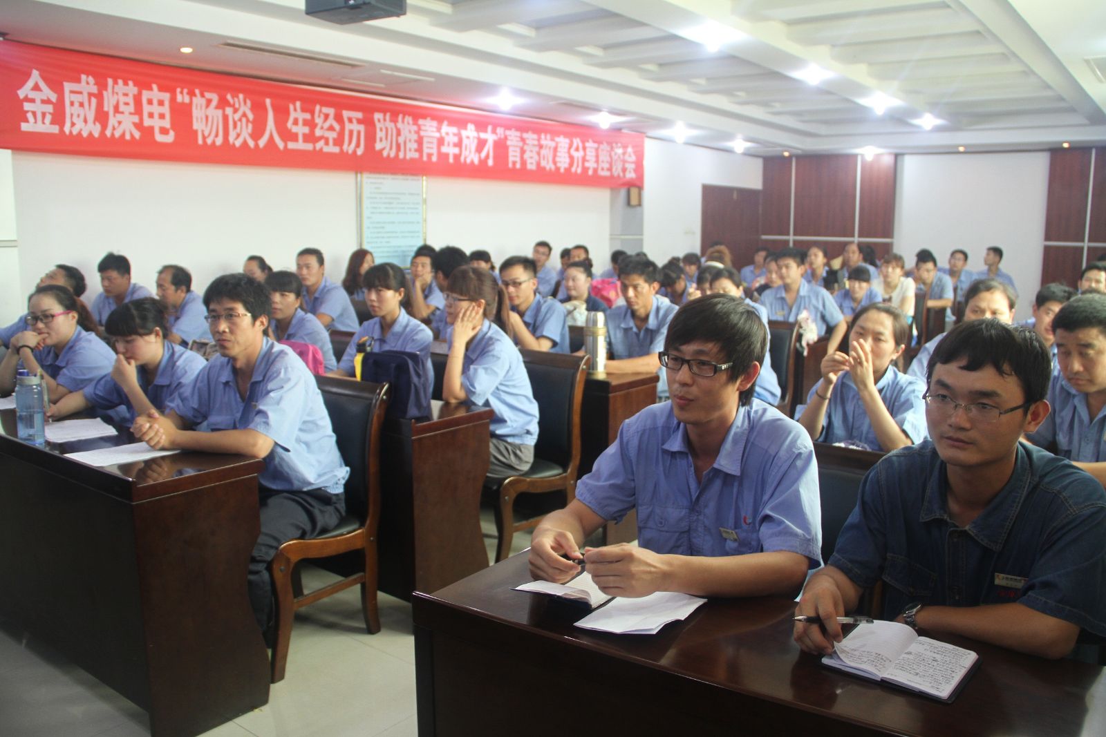 公司团委邀请了技术比武状员、劳动模范、十杰青年代表、节约美德青年代表等身边的青年先进典型以及公司领导参加,利用学习班的时间,分别在化工分公司、热电公司、选煤分公司、水泥公司举办了4场与员工面对面、零距离的交流座谈。来自不同岗位的10位先进代表,用朴实的语言讲述了自已的人生经历、感悟、学习方法以及在工作、生活、事业上的失败、反思、教训等。公司纪委书记吴艳蕊、副总经理张红艳、张文学、王允来等领导也与大家一起共同分享了他们的经历以及经验,并就公司当前形势及今后的发展状况做了介绍,并结合公司的发展实际,对青年人今后的努力方向提出了希望和要求。